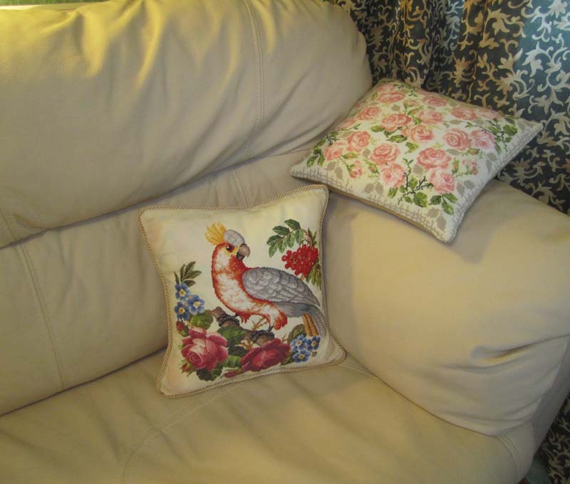 Теперь можно разлечься в подушках и балдеть: читать, вышивать или смотреть телек. Но обычно подушки художественно разбросаны по верху дивана, для пущей красоты. И места там еще много)